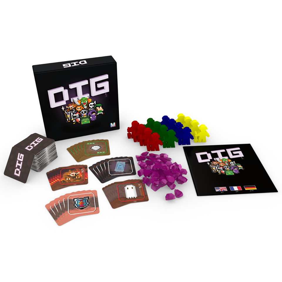 DIG est un jeu de carte et d’aventure mélangeant stop-ou-encore, gestion de ressources, placement de recrues et RPG.