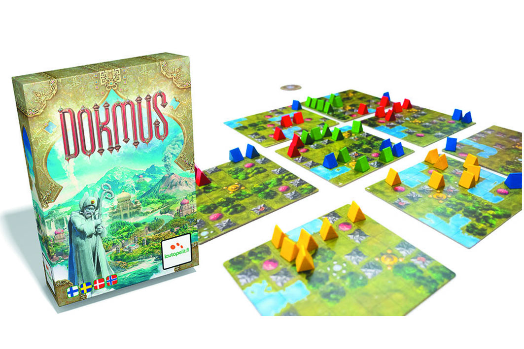 Dokmus est un jeu rapide où le plateau est en constante évolution. La carte du jeu est composée de huit pièces que les joueurs peuvent déplacer et faire pivoter. Le but du jeu est de gagner des points d’influence pour votre tribu et ainsi gagner la faveur de l’ancien dieu Dokmus.