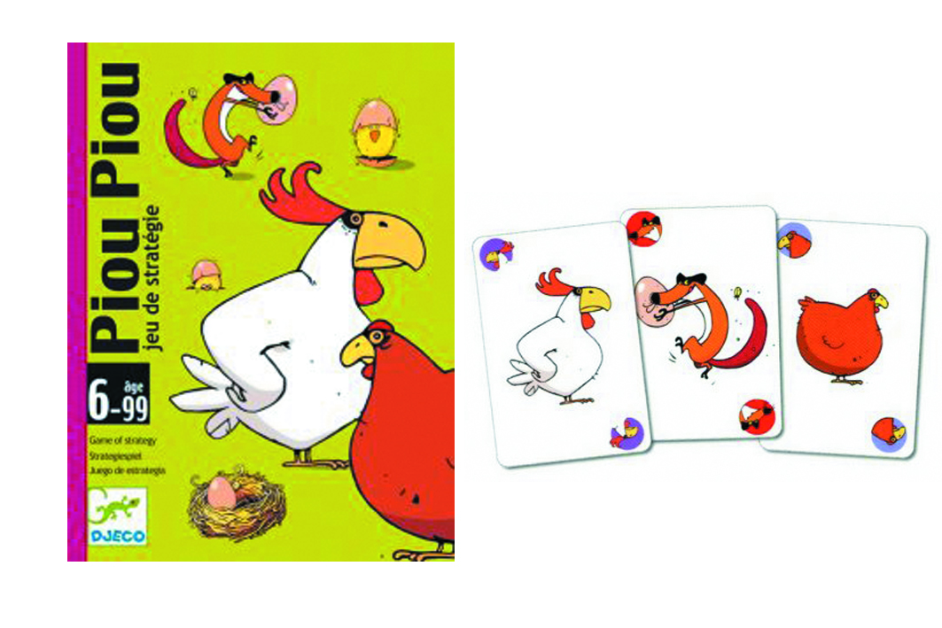 Les cartes représentent des poules, des coqs, des nids ou des renards. Il faut avoir 3 coqs ou 3 poules ou 3 nids pour obtenir un oeuf. Celui -ci peut éclore au tour suivant si vous avez 2 poules en main, mais à condition qu’un renard détenu par un autre joueur ne vous l’ait pas chapardé. On peut toujours se défendre du voleur si on a dans son jeu 2 coqs.