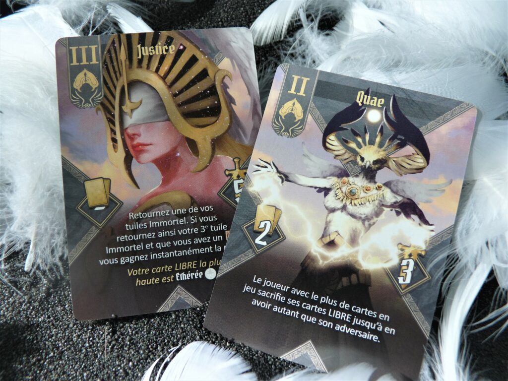 LA LUNE ROUGE SE LÈVE... La Lune Rouge approche, annonciatrice de la prochaine Grande Bataille. Les 8 Immortels de Jalaanx, des demi-dieux en conflit éternel, se préparent à nouer des alliances pour remporter la bataille épique ! Formez votre armée de toute pièce en recrutant 3 clans aux habilités uniques et surpassez votre adversaire. UN DUEL STRATÉGIQUE DANS L’UNIVERS D’IMMORTAL 8 Déployez vos Troupes, Héros et Immortels sur le champ de bataille et remportez la Grande Bataille par la force ou la ruse ! Gosu X est un jeu de cartes et de combinaisons pour deux où les joueurs construisent leur armée à l’aide des cartes de leur deck. Ce deck est formé de 3 clans choisis en début de partie via une phase de draft. Et les 2 clans non choisis modifient les règles du jeu ! Il faut donc soigneusement choisir vos clans tout en prenant en compte ceux qui seront mis de côté. Réduction de la taille de main, manche plus rapide, puissance militaire accrue… imposez vos conditions à votre adversaire ! COMMENT GAGNER À GOSU X ? Il existe plusieurs façons de gagner une partie de Gosu X : en obtenant 2 jetons Suprématie à l’issue des Grandes Batailles, en débloquant 5 jetons d’Activation, grâce notamment à Byun Hyung Ja, en plaçant 15 cartes face visible dans son Armée au cours de la partie, en réalisant une condition de victoire alternative (Goan Sul ou Justice). Selon les synergies de vos clans et les coups adverses, vous pourrez plus facilement réaliser l’une ou l’autre de ces conditions de victoire !
