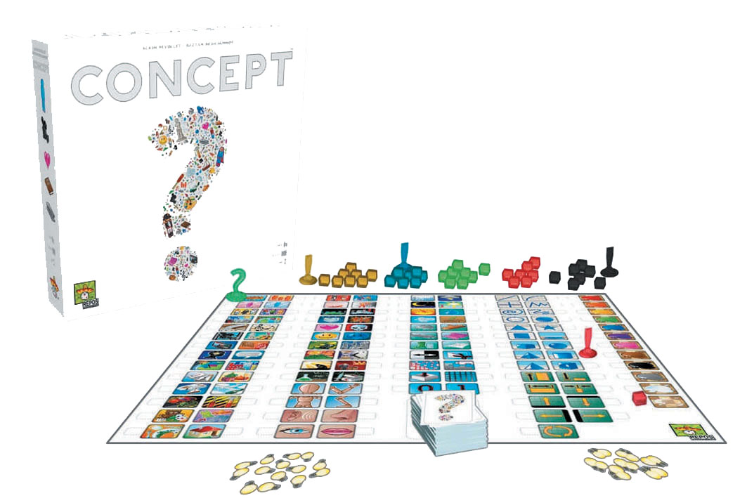 Dans Concept, le seul moyen pour communiquer est d’utiliser des icônes universelles et de les associer entre elles. Vous verrez, il ne faut pas forcément parler pour communiquer ! Par équipe de deux joueurs, choisissez un mot à faire deviner aux autres. Placez ensuite judicieusement les pions sur les icônes du plateau pour les activer une à une. Le premier joueur qui devine le mot gagne des points de victoire. Après 12 cartes jouées, le joueur qui a le plus de points remporte la partie.