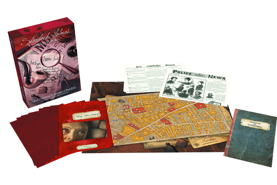 Une nouvelle boîte inédite et indépendante dans la gamme Sherlock Holmes Détective Conseil. 10 cas inédits dans une seule boîte : Sherlock Homes contre Jack l’Éventreur (4 enquêtes en mode campagne) et Aventures à West End (6 enquêtes inédites en français).