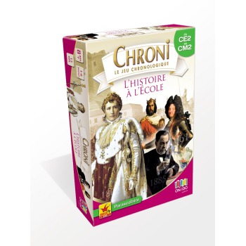 Chroni Histoire à l’école est un jeu de cartes pédagogiques pour réviser et mémoriser les grandes dates historiques étudiées du CE2 au CM2.
