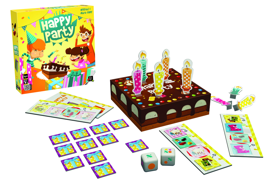 Quand vient son tour, chacun doit lancer les 2 dés puis souffler les bougies. Attention, seules les bougies de la couleur indiquée par les dés doivent être renversées ! Si le joueur y parvient, il peut alors piocher un cadeau. Et si ce cadeau fait partie de sa liste de souhait, il peut le garder. Le premier qui remplit sa liste a gagné. Happy Party est un jeu très original qui fera le bonheur de toute la famille.