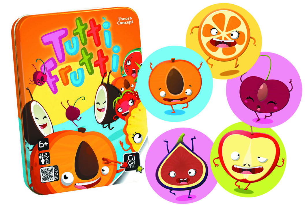 Devant vous des tuiles réversibles représentant des moitiés de fruits : chaque joueur en choisit une. Votre but est de ramasser un maximum de ces tuiles en empilant rapidement les faces de fruits identiques. Comme tout le monde joue en même temps, il faut observer vite et bien pour réaliser la plus haute pile ! Tutti frutti est un jeu ultra vitaminé pour réveiller vos réflexes et apporter de la bonne humeur à votre table : un cocktail de fruits à consommer sans modération.