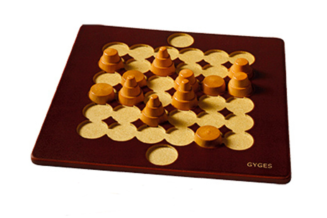 Les pièces sont de même couleur et n’appartiennent à aucun joueur. Chacun joue les plus proches de soi. Le but du jeu est d’amener une pièce sur la case d’arrivée à l’opposé du plateau ;les pièces se déplacent d’une, deux ou trois cases selon leur hauteur. Si un joueur arrive sur une case occupée, il peut déplacer cette pièce ou rebondir pour amplifier son déplacement. Un jeu abstrait tout en bois, aux règles simples, aux combinaisons infinies et au principe révolutionnaire.