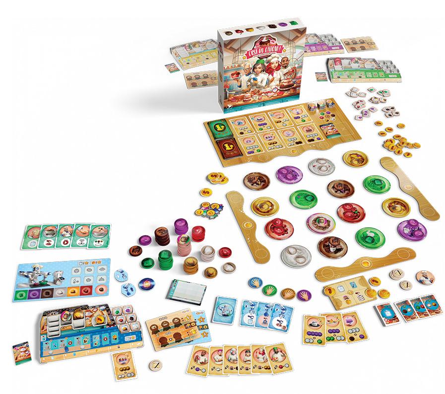Qui sera le meilleur pâtissier ? Vous avez travaillé dur pour intégrer un prestigieux concours de pâtisserie et le chef a hâte de vous voir réaliser ses célèbres recettes. Le moment venu, l’agitation et le chaos règnent en cuisine ! Montrez-vous plus malin et plus efficace que les autres participants, et que le meilleur chef gagne ! Tout au long de la compétition, recueillez des ingrédients, préparez de succulentes recettes, et achevez vos préparations pour obtenir des récompenses. Plus vous réalisez de recettes, plus votre expertise augmente, et plus vous gagnez de points. Des outils de cuisine et des jetons spéciaux vous permettront également d’obtenir divers avantages tactiques. À vos cuillères... Prêts... Pâtissez ! Age : 10 ans et + Nbre de joueurs : 1 à 4 Temps de partie : 45-90 mns