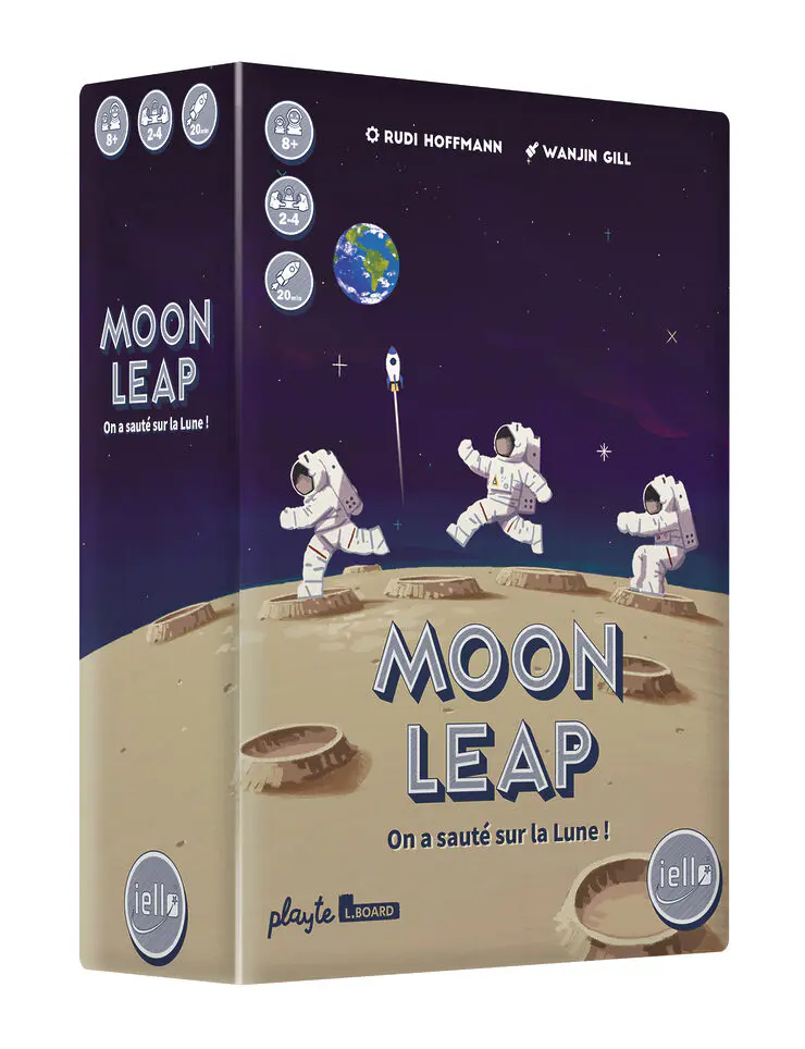 Faites la course entre astronautes pour atteindre les meilleurs cratères de la lune ! Dans Moon Leap, les joueurs essaient d’emmener leurs pions le plus loin possible sur la piste afin de marquer le plus grand nombre de points. Pour commencer la partie, chaque joueur reçoit cinq pions de la même couleur, numérotés de 1 à 5. Le joueur lance le dé et peut ensuite déplacer les pions correspondant au total du dé. Par exemple, si le joueur obtient un 5, il peut déplacer le pion 5, ou le 2 et le 3. Les pions sont toujours déplacés vers la prochaine case libre sur le plateau de jeu. Si le joueur réussit à former une chaîne de 3 pions ou plus, il peut relancer les dés. Le jeu se termine lorsque les trois dernières cases spécialement marquées sont occupées. Chaque joueur reçoit le nombre de points obtenus en multipliant le numéro de la case par le numéro du pion occupant.