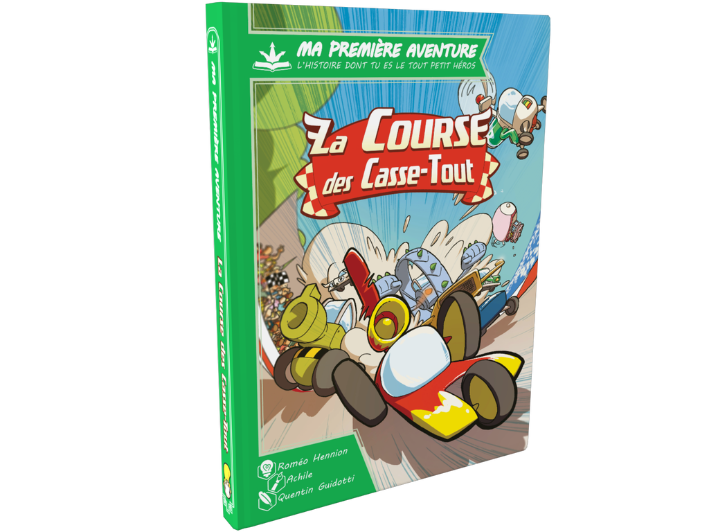Maintenant, ton aventure peut commencer. Tu vas pouvoir lire ce livre normalement, de gauche à droite, mais rapidement, tu feras face à des choix matérialisés par des pages coupées en trois. Tourne la partie de ton choix et découvre ce qui va se passer. Après plusieurs choix, tu arriveras à la fin de la course… Seras-tu le nouveau champion de la course des Casse-tout ?