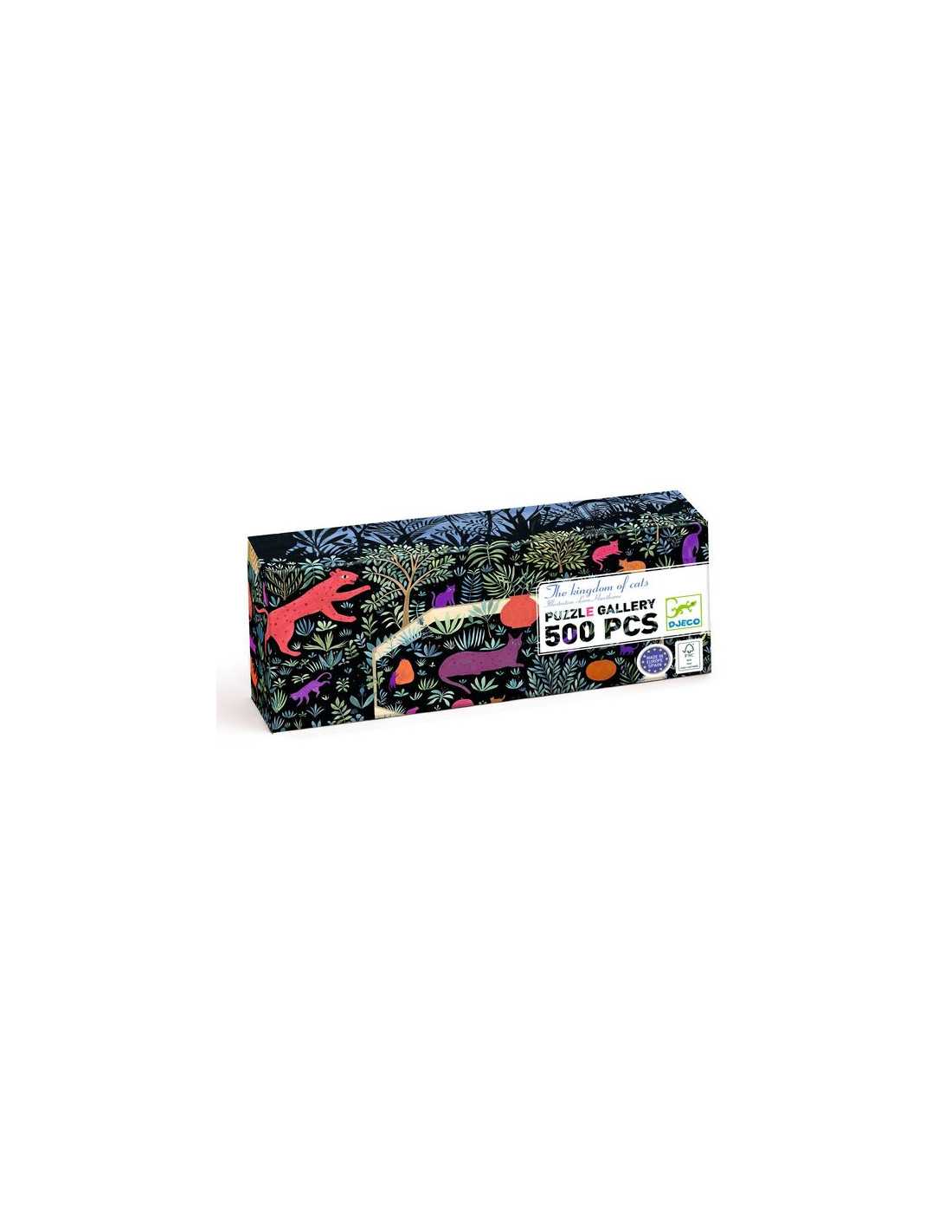 The Kingdom of Cats est un puzzle gallery de 500 pièces illustrant un monde où les chats dominent leur environnement. Ce format inédit tout en longueur met en valeur des illustrations riches et détaillées, offrant une expérience visuelle unique. Un poster à taille réelle est inclus pour faciliter l’assemblage. Fabriqué en Europe, ce puzzle de qualité est conçu pour être refait à volonté et sensibilise les enfants à l’art de manière ludique.