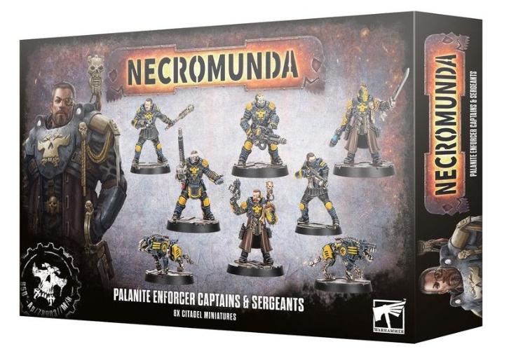 Ce kit en plastique permet d’assembler deux Palanite Enforcer Captains, deux Palanite Enforcer Sergeants, deux Palanite Enforcer Subjugator Sergeants et deux Hardcase Cyber-mastiffs pour vos gangs de Palanite Enforcers dans les parties de Necromunda. Dotés des meilleures armes de leur caserne et du meilleur équipement disponible, ils vous permettront de prendre l’avantage contre tous ceux que vous jugerez être des criminels.