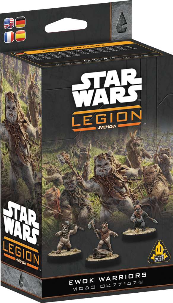 Cette boîte offre un total de 12 figurines en plastique à assembler (non peintes), avec des cartes permettant d’armer les Ewoks selon votre stratégie : frondeurs ou lanciers. Vous trouverez également des cartes pour enrichir vos options tactiques.