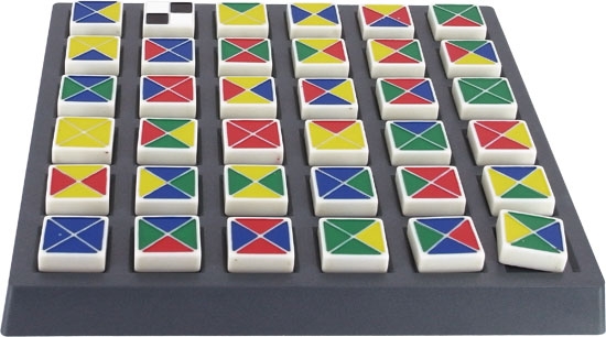 Disposez les 36 pièces de jeu aléatoirement sur le plateau. Retirez ensuite le pion noir et blanc afin de créer un espace vide.