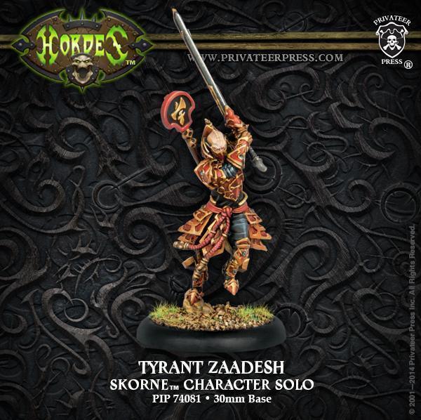 Tyrant Zaadesh est vendu en Blister. Un joueur peut recruter un Tyrant Zaadesh dans une armée Skorne.