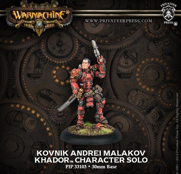 Étoile montante dans les rangs de l’armée du Khador, le Kovnik Andrei Malakov repousse les limites des warjacks sous son contrôle pour écraser toute opposition. Sa volonté de réussir sans considération pour les conséquences prélève parfois un lourd tribut parmi ses hommes et ses machines, mais pour Malakov, c’est le prix de la victoire.