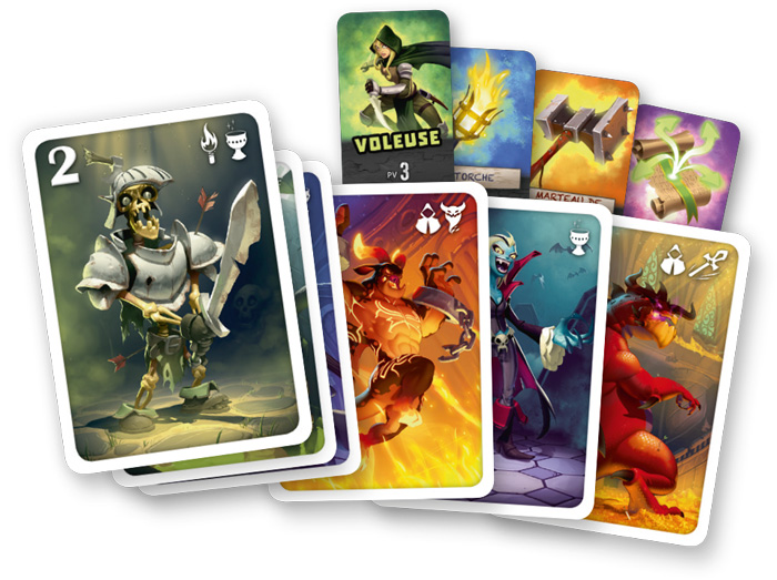Vous êtes tous à l’entrée du donjon, mais un seul d’entre vous peut entrer : le plus brave, le plus fou, ou celui qui n’a pas eu la chance de fuir ! Pour le déterminer, vous allez à chaque tour réduire votre équipement ou ajouter des monstres à affronter à l’intérieur.