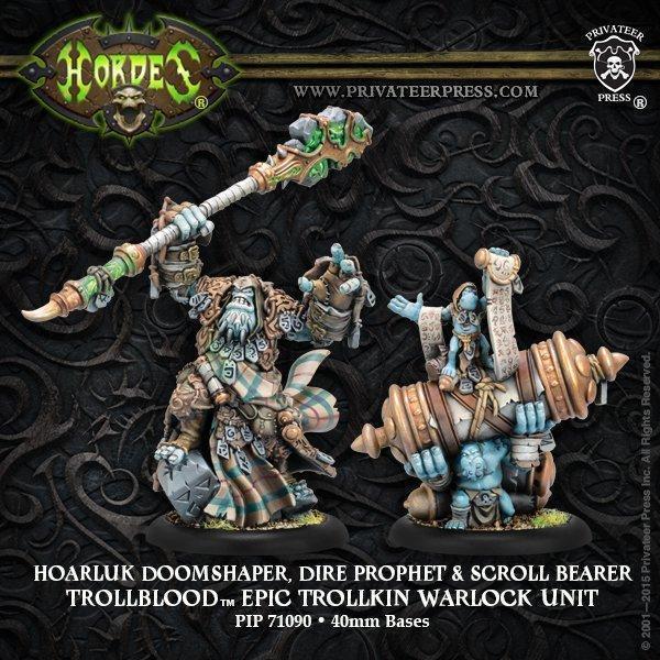 Hoarluk Doomshaper, Dire Prophet est vendu en boîte (PIP 71090). Un joueur peut recruter un Hoarluk Doomshaper, Dire Prophet dans une armée Trollblood.