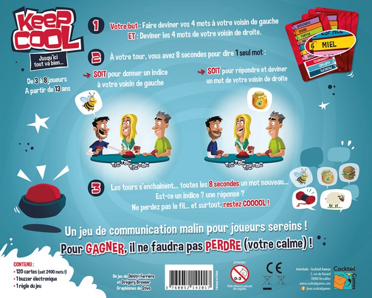 Main chaude, tête froide : faites deviner vos 4 mots à votre voisin de gauche ET devinez les 4 mots de votre voisin de droite, en même temps ! À votre tour, donnez un indice ou proposez une réponse avant le buzz. Suivez le fil et… pas de panique !