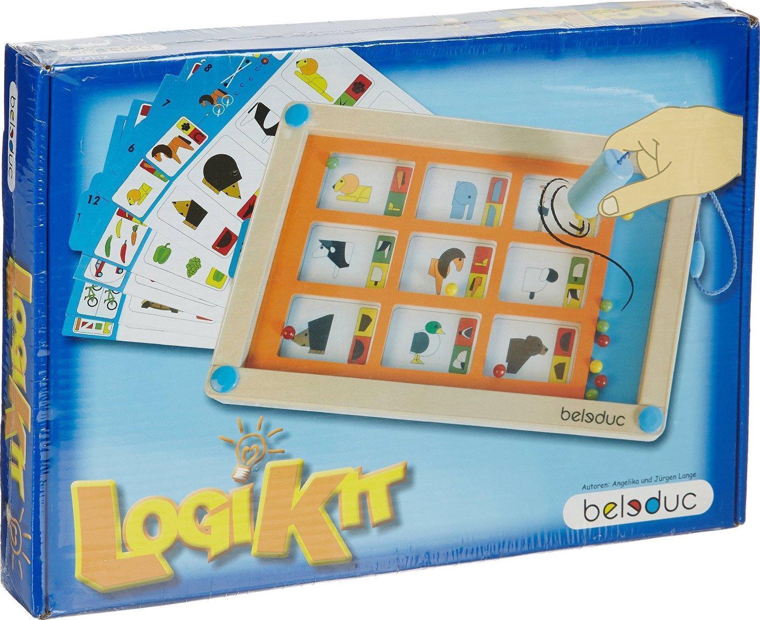 A la crèche, dans la salle d’attente du médecin ou en voyage, Logikit est un excellent "accompagnateur de jeu". Grâce aux 16 cartes de mission, conçues avec amour et un grand sens du détail, les jeunes joueurs découvrent et apprennent en s’amusant. Les boules de couleur et le crayon magnétique leur permettent de résoudre des énigmes présentant divers niveaux de difficulté et dans différentes catégories. En pratiquant cet exercice, ils développent leur habilité, la coordination des yeux et des mains ainsi que la motricité fine. Grâce à la fonction de contrôle de soi au dos des cartes, les assoiffés de connaissances évaluent eux-mêmes leurs résultats.