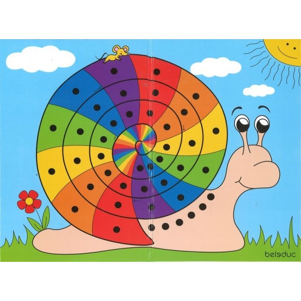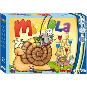 Les joueurs déplacent leurs pions sur le plateau chacun leur tour. A chaque tour, ils doivent mélanger les couleurs des dés en forme d’escargot. Le mélange des couleurs demande beaucoup concentration. Avec un peu de chance, tu seras le premier à atteindre le centre de la coquille et à remporter la partie.