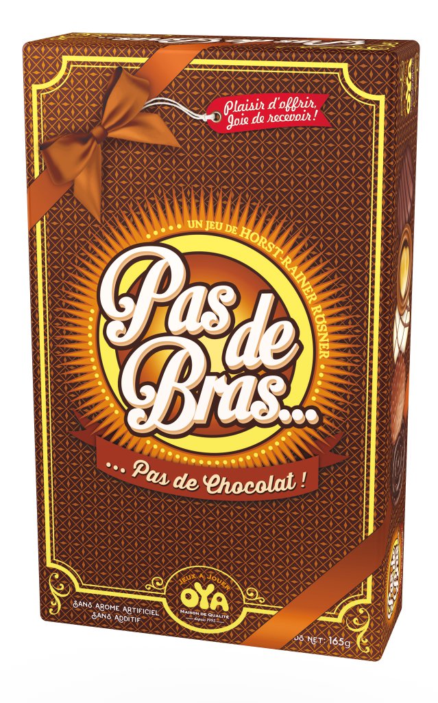 et multiplie ce total par 2 s’il a du cacao. S’il a récupéré une huile de palme, ce total est négatif, s’il en a récupéré deux, le total repasse positif (c’est l’effet "Nutella")... Mais il y a trois huiles de palme par sorte de chocolat, et la troisième refait passer en négatif enfin, s’il a la carte "Pas de bras", le total est définitivement nul pour cette sorte de chocolat. Pas de bras... pas de chocolat.