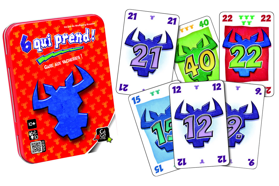 Ces drôles de cartes valent de 1 à 7 « têtes de bœufs » chacune. Votre but : en récolter le moins possible. En début de manche vous recevez 10 cartes. A chaque tour, les joueurs choisissent une carte et la révèlent à tous en même temps : ces cartes sont ajoutées à l’une des 4 séries qui se forment sur la table. Celui qui doit jouer la sixième carte d’une série « récolte » les 5 premières... et toutes leurs têtes de bœufs ! Quand les 10 cartes sont jouées, chacun compte ses bœufs et les additionne à son total précédent. Après plusieurs manches, le plus petit troupeau gagnera la partie.