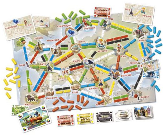 Facile à apprendre et rapide à jouer, ce jeu est le moyen idéal pour découvrir en douceur la série des Aventuriers du Rail. Collectez des cartes Train, posez vos wagons sur les voies ferrées du plateau et reliez les villes listées sur vos tickets pour remporter la victoire.