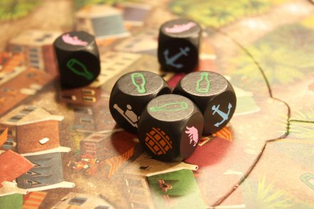 Les bonnes combinaisons de dés rapportent des pièces, les mauvaises des jetons crâne.