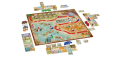 158 pions en bois, 94 tuiles détaillées, 45 cartes illustrées, 5 plateaux Joueur, 1 plateau de jeu, 1 livret de règles, et 1 fiche de référence.