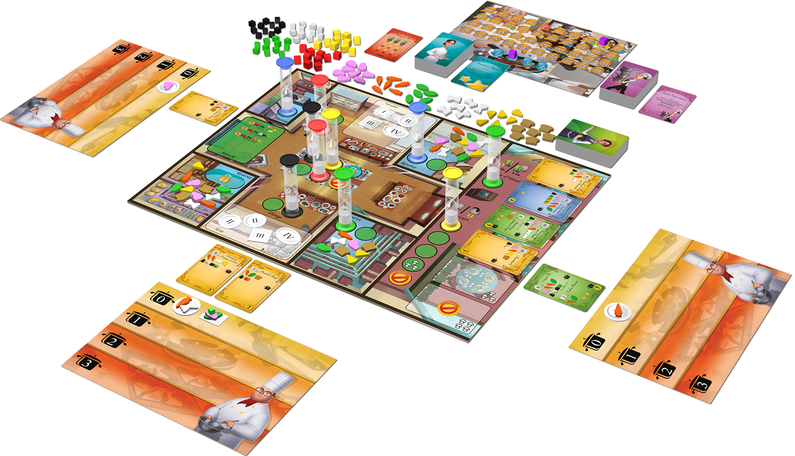 Kitchen Rush est un jeu coopératif de placement d’ouvriers dans lequel vous gérez votre personnel à l’aide de sabliers. En quatre manches de quatre minutes, vous devrez prendre les commandes, préparer les plats et assurer le service sans faire attendre vos clients.