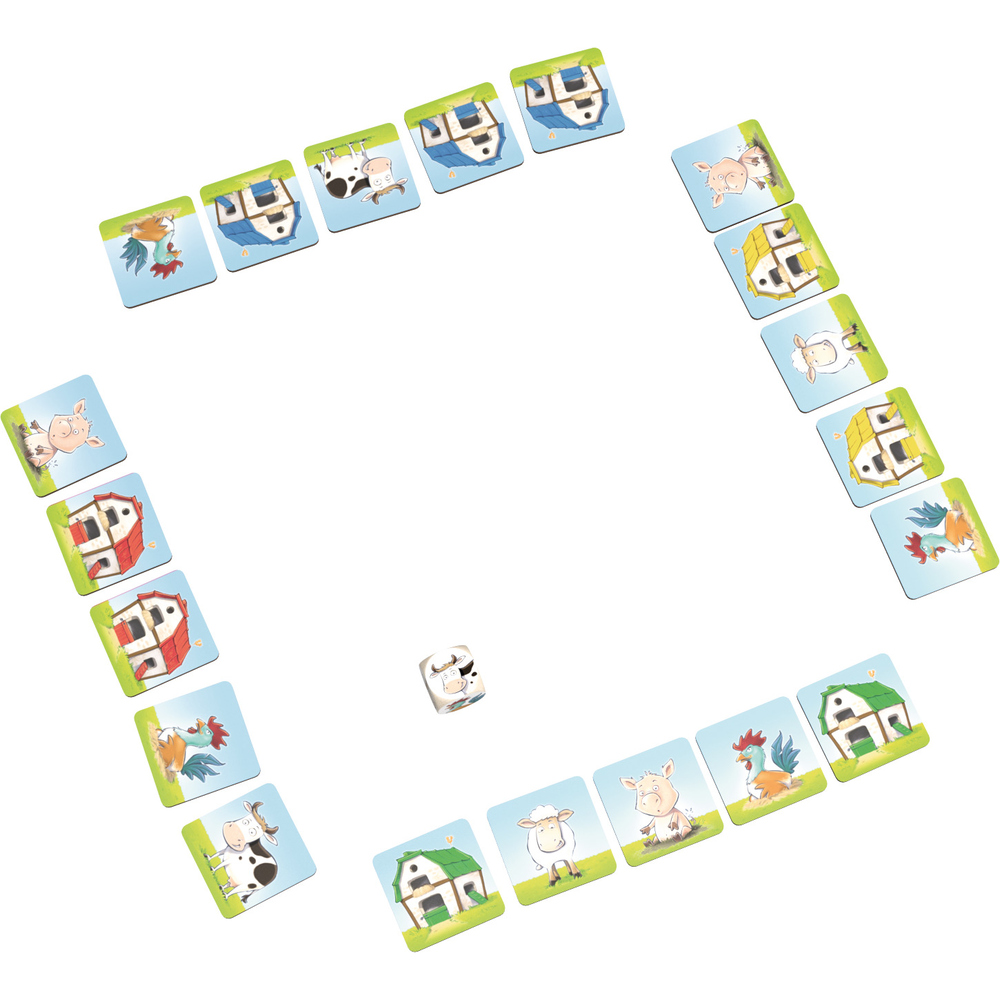 La nuit tombe sur la ferme. Il faut donc rentrer les animaux dans l’étable. Mais bizarre…ils s’en échappent à chaque fois ! Les autres joueurs se cacheraient-ils derrière tout ça ? Avec de la chance au dé et une bonne mémoire, le joueur qui réunira tous ses animaux dans l’étable en même temps gagnera !