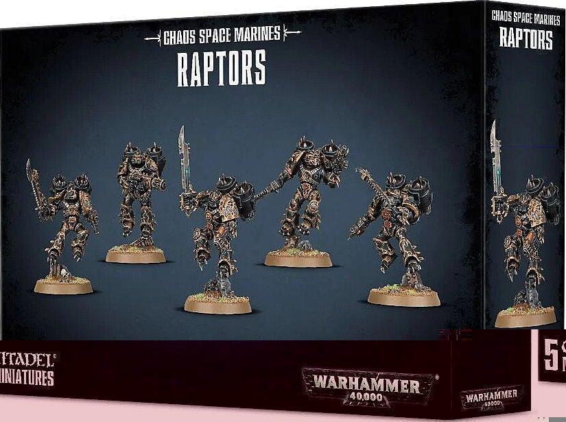 Les cruels Raptors semeurs de terreur se considèrent comme l’élite des bandes de Chaos Space Marines. Leurs escouades meurtrières symbolisent tout ce que sont devenus les Assault Marines des Légions renégates. Les figurines de Chaos Space Marine Raptors présentent des poses dynamiques et variées. Elles sont sculptées perchées ou en train de décoller parmi les débris du champ de bataille. Leurs armures aux arêtes de métal présentent tous les effets corrupteurs du Warp : grilles ouvertes dans les épaulières ; câbles qui dépassent des plaques d’armure ; crocs crevant diverses surfaces et bordant les tuyères des réacteurs dorsaux. Ces êtres cruels manient des pistolets bolters et des épées tronçonneuses.