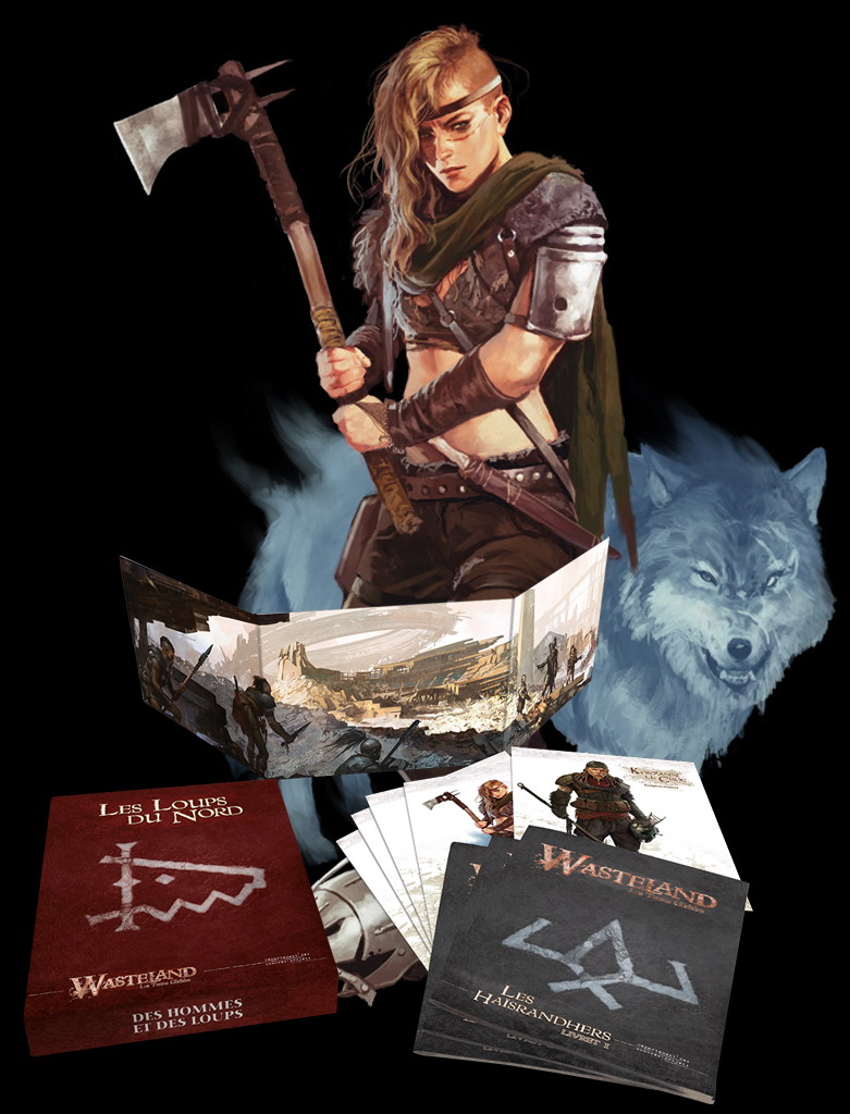 Cette boîte contient du matériel de jeu qui vous permettra d’animer vos parties de Wasteland, les terres gâchées en passant « de l’autre côté », dans les rangs des conquérants haïsrandhers.