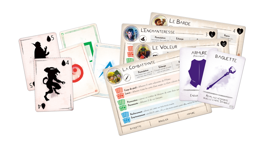 Grâce aux cartes de l’Abîme, les joueurs vont pouvoir former des combinaisons afin de jeter de redoutables sorts et d’accomplir le rituel final de bannissement morts-vivants. Pour cela – et pour remporter la partie, ils devront œuvrer de concert, conjuguer leurs compétences, se porter assistance, et se protéger mutuellement des attaques des morts-vivants.