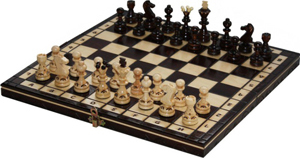 Jeu d’échec "Pearl" format voyage (la boite se replie avec les pions rangés à l’intérieur) en bois massif. Dimension 35 cm.