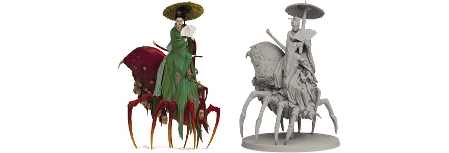 Voici quatre nouvelles créatures fantastiques, terribles et sanguinaires, pour vos parties de Rising Sun. Jorōgumo, la femme-araignée, reine de la séduction, peut influencer la loyauté des guerriers ennemis. Jinmenju, « l’arbre à visage humain », autorise le Seigneur à recruter davantage d’hommes-liges, tandis que le Dragon du feu noie plusieurs armées ennemies dès le début d’une bataille ! Le Oni des Fléaux est une créature abjecte, qui repousse les samouraïs honorables des provinces où il se tient, prêt à faucher ses adversaires.