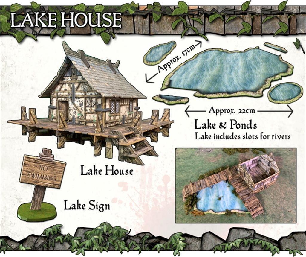 – 1 Lake House : 4 Wall Panels, 2 Floor Panels, 2 Roof Panels, 1 Roof Ridge, 2 Roof Clips, 2 Gable Panels, 2 Stilt Supports