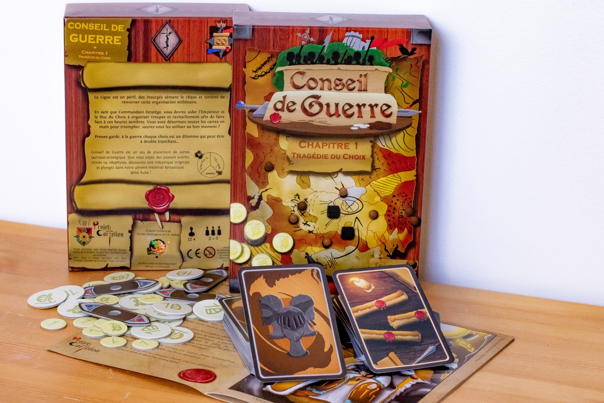 La Ligue est en péril, des insurgés sèment le chaos et tentent de renverser cette organisation millénaire. En tant que Commandant-Stratège, vous devrez aider l’Empereur et le Duc du Choix à organiser troupes et ravitaillement afin de faire face à ces heures sombres. Vous avez désormais toutes les cartes en main pour triompher, saurez-vous les utiliser au bon moment ? Prenez garde, à la guerre chaque choix est un dilemme qui peut être à double tranchant... Conseil de Guerre - Chapitre 1 : Tragédie du Choix est un jeu de placement de cartes tactique-stratégique. Que vous soyez des joueurs avertis, initiés ou néophytes, découvrez une mécanique originale et plongez dans notre univers médiéval fantastique, 3ème Aube !