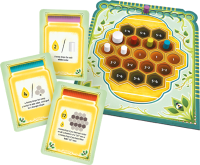 Bienvenue dans la vie secrète des abeilles ! Beez invite les joueurs à découvrir le monde laborieux des abeilles. Avec votre pion abeille, allez de fleur en fleur ramasser les pions nectar et les ranger dans votre ruche. Choisissez l’orientation de votre pion abeille (qui est sur un socle hexagonal) vous permet de connaître votre nombre de cases de déplacement dans cette direction, mais également de savoir où devra être rangée votre récolte au sein de votre rayon de ruche. Essayez d’accomplir les objectifs communs tout en faisant avancer les vôtres, que vous seuls connaissez. En fin de partie, le joueur ayant le plus de miel remporte la partie. Contenu la règle de jeu, 4 pions abeille sur socle hexagonal, 19 tuiles (15 fleurs, 1 de départ et 5 feuilles), 18 cartes objectifs, 60 pions (nectar et marqueurs), 4 plateaux rayon de miel, 1 bloc de feuilles de score.
