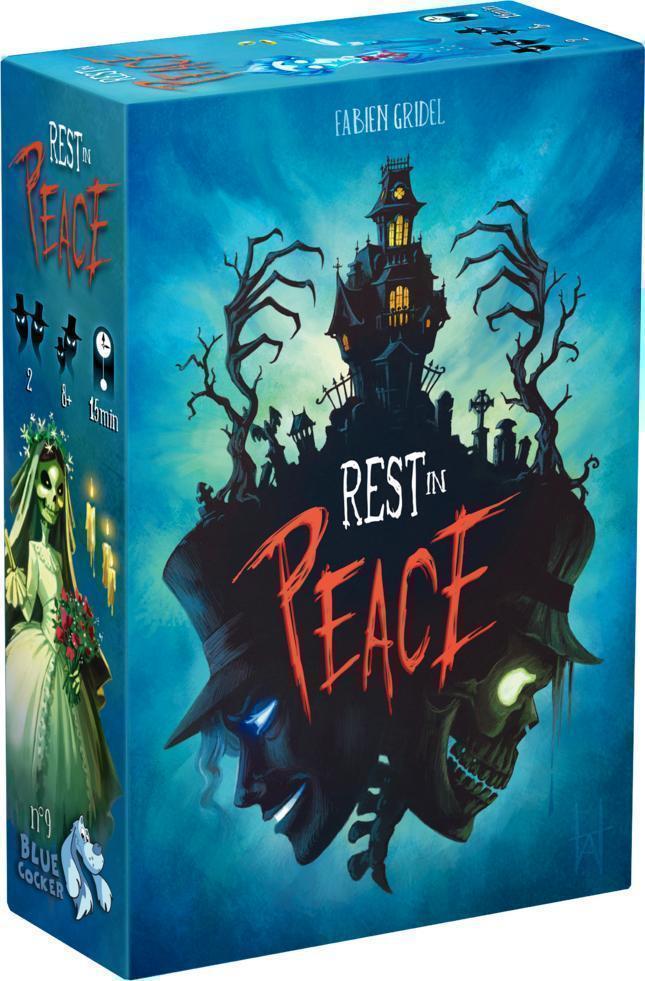 Depuis plus d’un siècle, l’on raconte dans nos contrées l’histoire de deux familles qui portaient l’une pour l’autre une haine sans pareille. Cette inimitié était telle qu’elle perdura même après leur mort... Prêtes à tout pour s’approprier les plus belles demeures des environs pour le compte de leur propre lignée, ces deux familles de Fantômes n’ont depuis de cesse de hanter manoirs et châteaux pour en faire fuir les pauvres âmes qui osent s’y aventurer ! Envoyez vos fantômes hanter les châteaux et les manoirs de vos ancêtres pour en prendre le contrôle. Mais sachez lâcher prise pour obtenir les faveurs des médiums qui vous aideront à atteindre la victoire finale. Rest In Peace (R.I.P.) est un jeu de cartes tactique pour deux joueurs. Chaque joueur a une famille de 21 fantômes (cartes de 1 à 6). À tour de rôle, chaque joueur va chercher à s’emparer de jetons Demeures en obtenant la majorité sur le lieu en jeu grâce à sa main de cartes-fantômes. Pour remporter la victoire finale, un joueur doit contrôler 3 châteaux ou 4 manoirs. Mais à chaque demeure perdue, le joueur va récupérer la carte médium associée qui lui conférera un pouvoir pour l’aider dans sa quête. Il faudra donc gérer ses forces et maîtriser le rythme du jeu pour l’emporter. De nombreuses cartes médium aux pouvoirs variés permettront des parties sans cesse renouvelées. Des règles expliquées en 1 minute vont donneront accès à un jeu dynamique, facile à appréhender, subtil à maîtriser avec l’ajout progressif de nouveaux effets.