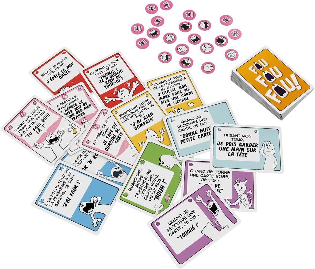 Vous vous souvenez de Fou fou fou, le jeu de dingues dans lequel le grain de folie est préférable à la monotonie d’un cube en bois ? Non ? Retournez aux critiques folles des joueuses et des joueurs contaminés par cette démence. Voilà, vous vous rappelez ? Parfait. Imaginez maintenant Fou fou fou, avec un nouveau type de cartes. Elles sont roses et vous les offrez aux autres. Si vous pensiez avoir connu une ambiance de folie, vous vous trompiez lourdement !