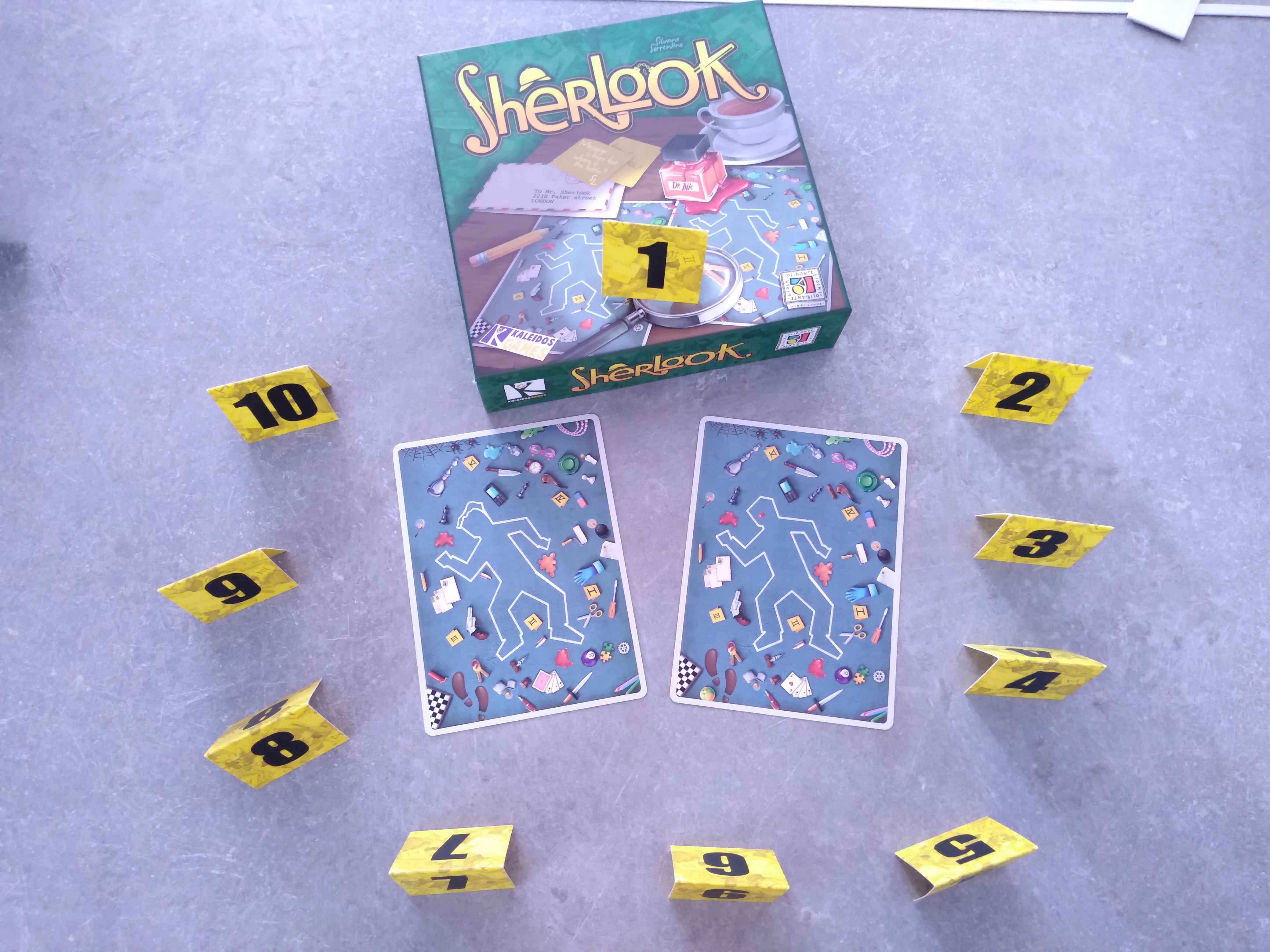 Au commissariat, c’était un mythe. Rien n’échappe à ses yeux attentifs. Pour tous, il est simplement "Sherlook", l’enquêteur a la capacité d’observation infaillible. Pourrez-vous en assumer son héritage ? Dans Sherlook, il vous faudra être le plus proche du nombre de différences visibles entre deux cartes. Retournez-les, observez-les, et soyez le premier à prendre le chiffre qui vous semble correspondre aux différences. Soyez le plus proche, ou le plus exact pour remporter un point.