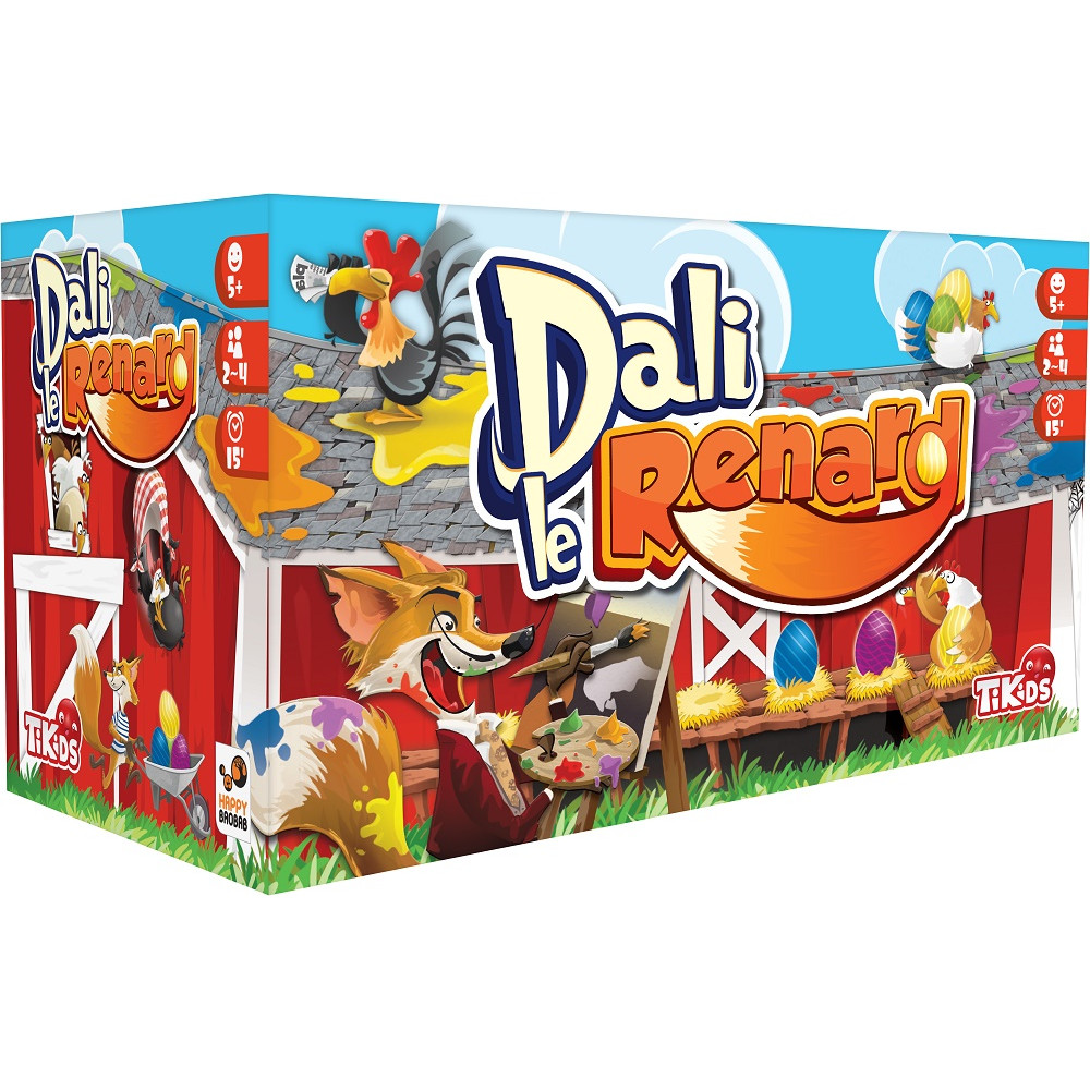 DALI LE RENARD Un « Stop ou Encore ? » simple, fun et efficace pour toute la famille (dès 5 ans) dans une superbe boîte-jouet. Lancez les dés dans le poulailler ! Ils indiquent quels oeufs vous pouvez choisir et lequel est interdit (car le fermier veille). Tant que vous pouvez récupérer un oeuf différent à chaque lancé, vous pouvez décider de relancer les dés pour gagner encore plus d’oeufs ! Mais attention, si vous tentez trop votre chance, le fermier vous attrapera et vous rentrerez bredouille. Alors soyez malin et sachez quand vous arrêter pour être le premier à récupérer 10 oeufs ! LES + ● Une boîte mécanique de type « Shut the box » qui se déplie en poulailler avec un système astucieux de portes qui s’ouvrent et se ferment pour distribuer les oeufs colorés. ● Un jeu de « Stop ou Encore ? » très malin et accessible dès 4 ans.