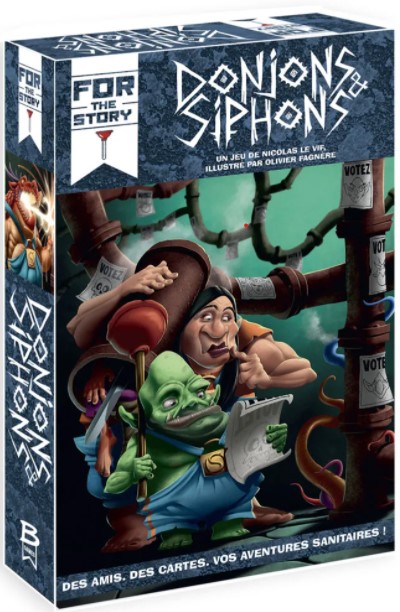 La simplicité d’un party game, les sensations du jeu de rôle ! Rassemblez quelques amis et inventez tous ensemble une histoire pleine de rebondissements, en toute simplicité. L’entretien des W.C. et des canalisations d’un donjon est un travail difficile, rempli d’épreuves, et il est temps que le Seigneur du Donjon vous prenne en considération. Qui parmi vous montrera qu’il a toutes les qualités (et une bonne dose de folie) pour vous représenter ? Principe du jeu : Choisissez chacun l’un des 10 personnages proposés (gobelin, squelette, vampire…) et laissez-vous guider par les questions des 46 cartes Évènement. À chaque carte, choisissez quel autre joueur sera votre partenaire et répondra aux questions avec vous. En quelques tours de jeu, vous aurez raconté un récit délirant, mêlant humour et aventure, jusqu’à la carte finale « L’heure du vote a sonné ! ». Qui élirez-vous pour défendre votre cause auprès du Seigneur du Donjon ?