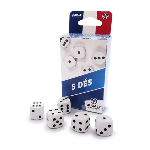 Envie de jouer au Yam’s, au BlackJack ou au 421 ? Vous avez perdu le dé de votre jeu de société préféré, ou vous avez besoin de désigner quelqu’un de manière aléatoire et innocente ? Ce pochon de 5 dés tombe à pic !