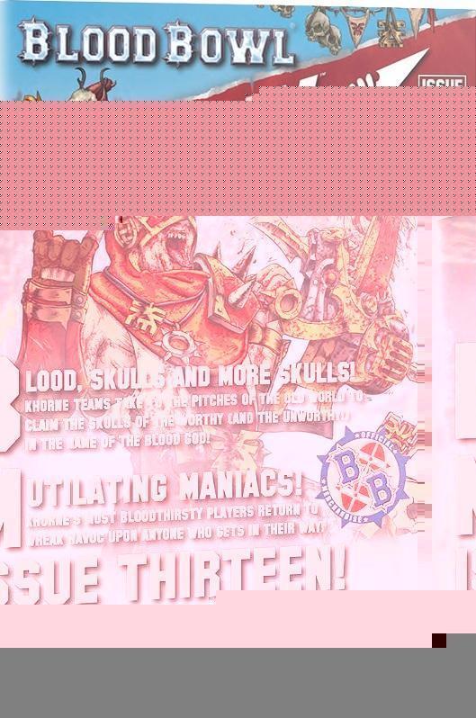 En anglais. The exceptionally fierce Terrence "the Butcher" Iansson wipes the blood off his hands just long enough to guest edit this issue of Spike ! Journal packed with eightfold treats. That’s right, it’s a Khorne special, focusing on those who play to appease the god of skulls. Featuring 36 crimson-hued pages, this magazine covers the history, rules, and rosters of the Khorne team. Alongside all the tales of violence, violence, and more violence, you’ll find the fantastic fun and essential commentary you’ve come to expect from Spike ! Journal. As such, this magazine is the perfect companion for the savvy (and bloodthirsty) coach. It includes : - Blood for the Blood God : delve into the background and history of Khorne teams, the various player positions, Star Players, and a team roster. - Famous Khorne Teams : what do Khorne’s Killers, The Bloodsoaked Bruisers, The Flesh Hounds, and The Khornate Cripplers all have in common ? They all donated an overwhelming number of skulls to Khorne this season, and they feature in this section covering the many teams that play for blood. - The Skull-tribe Slaughterers Team Spotlight : a special in-depth article focusing on one of the few Khorne teams to reach the epiphany that winning games means more chances to claim better quality skulls. Includes a team profile featuring team colours, honours, Spike ! team rating as well as the roster of their famous 2497-2498 squad, and loads more. - Star Player Spotlight – Grashnak Blackhoof : a renowned Blitzer known as "The Great Black Bull" often considered one of the most violent players to ever grace the gridiron. - Chat With the Rat : everyone’s favour-best rat Hackspit Quillchewer takes the time to talk to the owner of the Khornate Cripplers, Overlord Kolgan Bloodrage, about their storied rivalry with the Slaaneshi Sidewinders. - Star Player Spotlight – Scyla Anfingrimm : a wrecking ball of muscle on the pitch, Scyla’s unique brand of violence has given him heaps of adoring fans and sponsorship deals despite no one knowing where he came from. - Chaos Leagues : all-new rules and advice to help you run Chaos Leagues – a variant on the standard Blood Bowl League Season. The Cursed Skull Goblet is open to all teams, however each team participating must select one of the four Chaos Gods or Chaos Undivided as their patron. Includes rules such as a Wrath of Khorne Weather Table, Khornate Kick-off Table, unique post-game sequences, and special rules for the Altar of Khorne Blood Bowl Pitch and Khornate balls. - Dirt From the Dugout : Mindy Piewhistle delivers another steaming hot pile of gossip, this time focussing on the underhanded means the Crimson Butchers have been using to convert rival fans into Khorne worshippers. - Eviscerate and Exsanguinate : this is your guide to getting the most out of your skull-loving Marauders. Includes an overview of the strengths of the Khorne team (violence) positions, tactics (enacting violence), how to start out, and how to develop your team over a league, as well as examples of offensive and defensive set-ups. Surprising no one, Khorne teams prefer offence. - Star Player Spotlight – Max Spleenripper : innovative and skilled with a chainsaw, Max has become a must-have player in Khorne teams and a household name. Find out how he earned the name ’Spleenripper’ right here. - Ask Lord Borak : curious Blood Bowl fans have their questions answered by the fearsome Lord Borak. - Coffin Corner : plenty of players have lost their heads over the years, pleasing Khorne greatly. This regular column remembers those who died, willingly or not, in tribute to the Blood God. - Mighty Blow ! – New Brawls Please : this comic takes a look back at one of Bob Bifford’s games against a Khorne team.