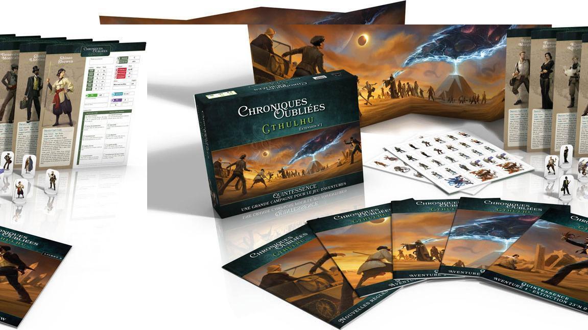 Bienvenue dans Quintessence, la première extension pour la boîte Chroniques Oubliées Cthulhu – initiation au jeu d’aventures. La première boîte fournissait tout ce dont vous aviez besoin pour découvrir le jeu de rôle et jouer une première campagne de jeu de rôle d’horreur dans les années 1920. Dans Quintessence, vous trouverez une incroyable campagne — pour des personnages de niveau 5 à 9 — qui s’étale sur près de 200 pages et quatre des cinq livrets de l’extension. Quintessence vous promet des heures et des heures de jeu que l’on espère mémorables. L’histoire, certes plus longue que la campagne de la première boite, mais tout aussi accessible, peut bien évidemment prendre la suite de Septembre rouge. Elle peut également être joué comme une aventure indépendante.