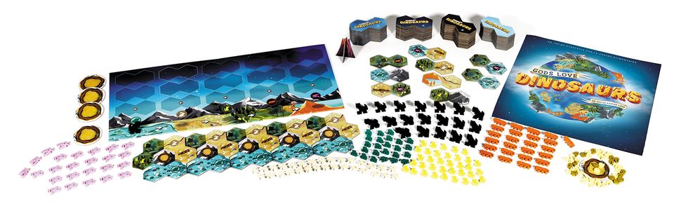 Agrandissez votre troupeau de dinosaures en les nourrissant pour leur faire pondre les œufs qui vous rapporteront des points de victoire. Mais la tâche n’est pas si facile. Il vous faudra créer un écosystème florissant en respectant les règles de la chaîne alimentaire. Comment créer un écosystème capable de faire vivre les dinosaures qui règneront sur la planète ? Les ressources sont précieuses, certaines espèces menacées d’extinction et toutes doivent manger pour survivre. L’équilibre de la vie est en jeu ! En tant que divinité, vous avez hérité de la lourde tâche de créer de toutes pièces un écosystème avec une chaîne alimentaire animale équilibrée entre proies et prédateurs. Le problème, c’est que vous aimez tellement les Dinosaures que vous allez juste vouloir en créer le plus possible ! À chaque tour, vous ajoutez une tuile à votre écosystème, pour obtenir de nouveaux animaux et leur offrir l’espace nécessaire pour se multiplier. De temps à autre, vos Dinosaures seront lâchés dans votre écosystème, dévorant tous les animaux. Plus ils mangent, plus ils pondent d’œufs - et plus vous marquez de points ! Mais faites bien attention à ne pas manger trop d’animaux, ou vous n’en aurez plus assez pour maintenir vos Dinosaures en vie la prochaine fois.