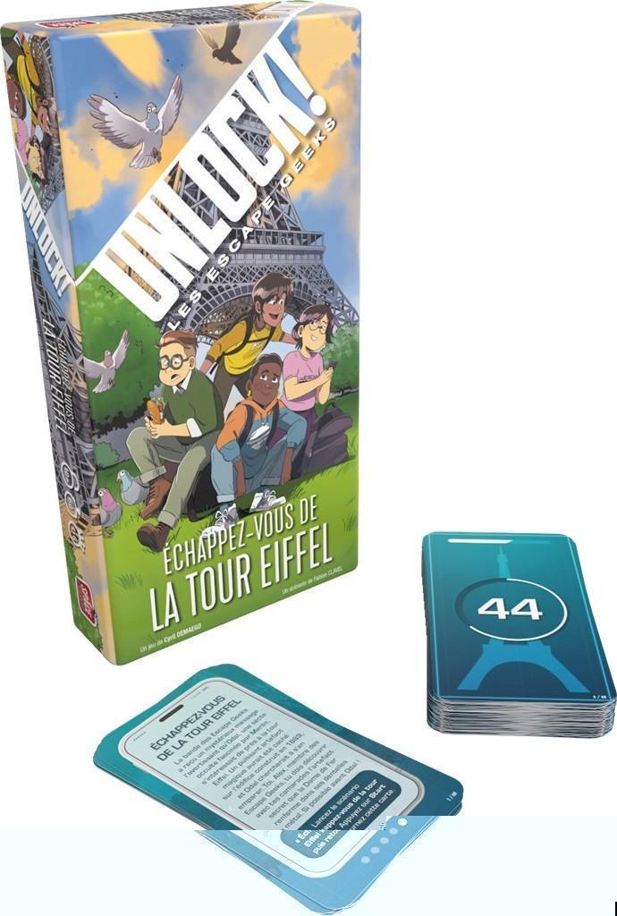 Vous avez reçu un message. Les membres de la secte ODAL sont à la recherche d’un artefact puissant qui a été caché dans la Tour Eiffel lors de sa construction. Grimpez les étages de la dame de fer et mettez la main sur l’artefact… avant qu’Odal ne s’en empare ! Après les romans, les Escape Geeks débarquent dans une aventure Unlock ! inédite ! Cette aventure complète est constituée de 60 cartes. Elle se joue avec les règles du jeu Unlock !. Une boîte faite pour les fans du jeu... et pour les débutants !