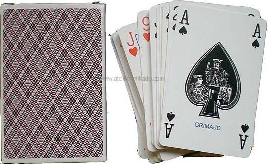 Jeu de 54 cartes à jouer Grimaud Poker PVC Etui cartonné Cartes de qualité 100 % plastique, lavables, indéchirables Dimensions : 8.8 x 5.7 x 1.8 cm